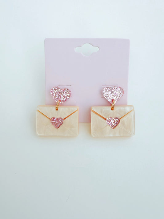 Pink Heart Love Letter Valentine’s Day Resin Earrings