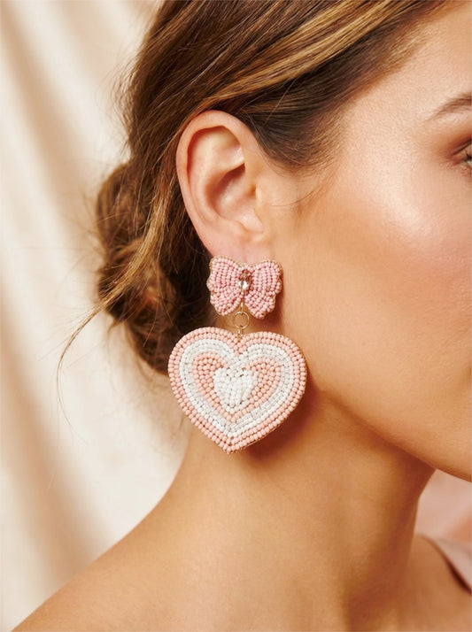 Pink Heart and Bows Valentine’s Day Beaded Earrings