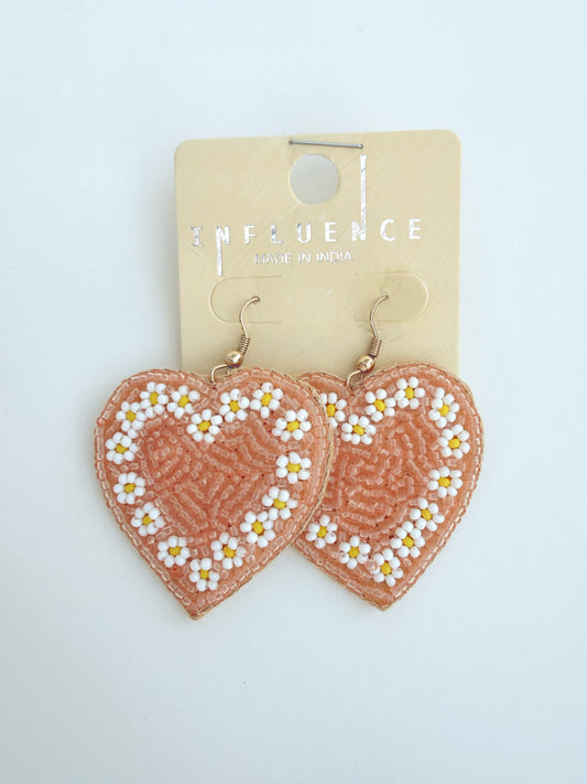 Pink Floral Heart Valentine’s Day Beaded Earrings