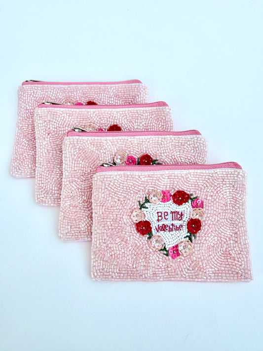 Pink Floral Heart Valentine’s Day Beaded Earrings