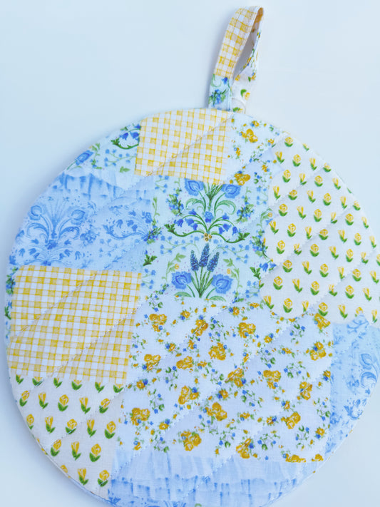 Blue and Yellow Patchwork Floral Insulated Hot Pad
