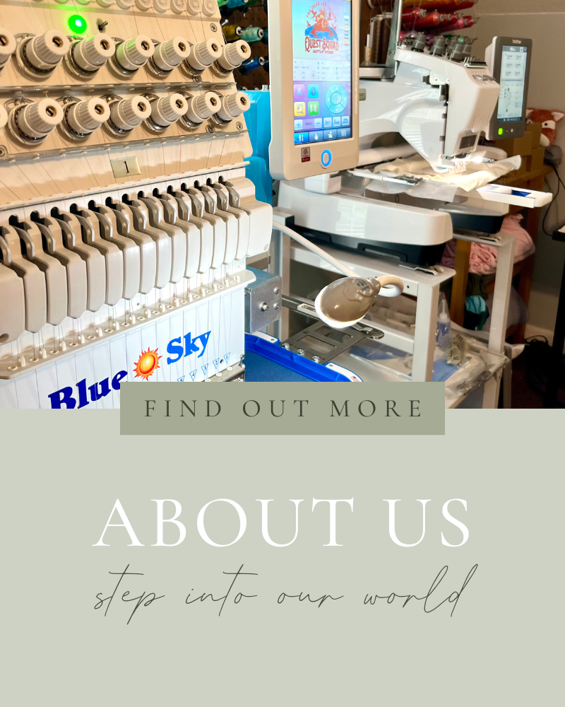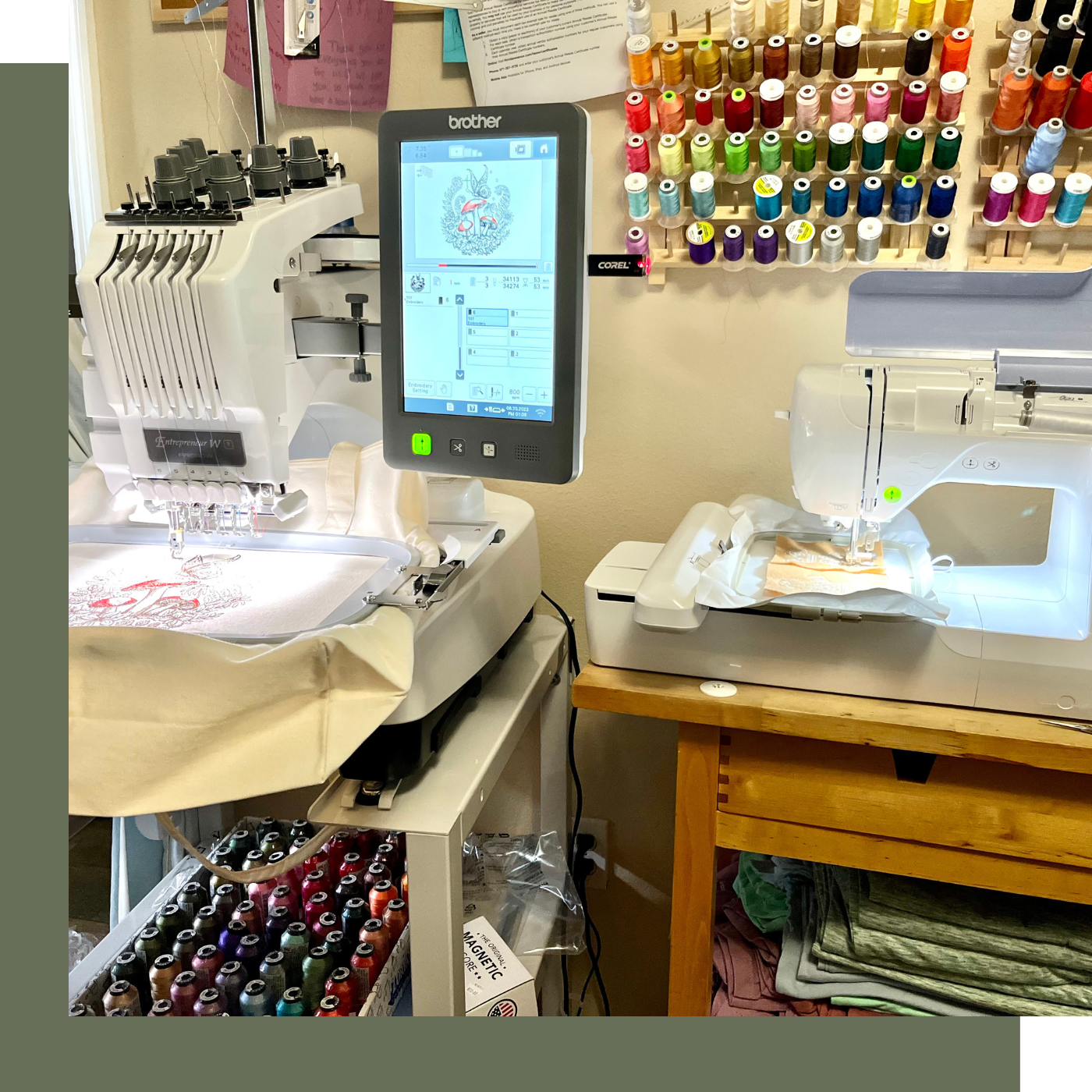 At that point, I was creating more embroidered goods and wanted to start making items to sell as well. So slowly, my business evolved from creating bath and body goods to only embroidered products. I then jumped in and purchased a six needle embroidery machine that helped me exponentially with new designs and products, while cutting down the time that it takes to embroider an item. Now, don't get me wrong, it still takes a long time to embroider, but with a six needle, I can embroider up to 6 colors without having to change the thread color.
