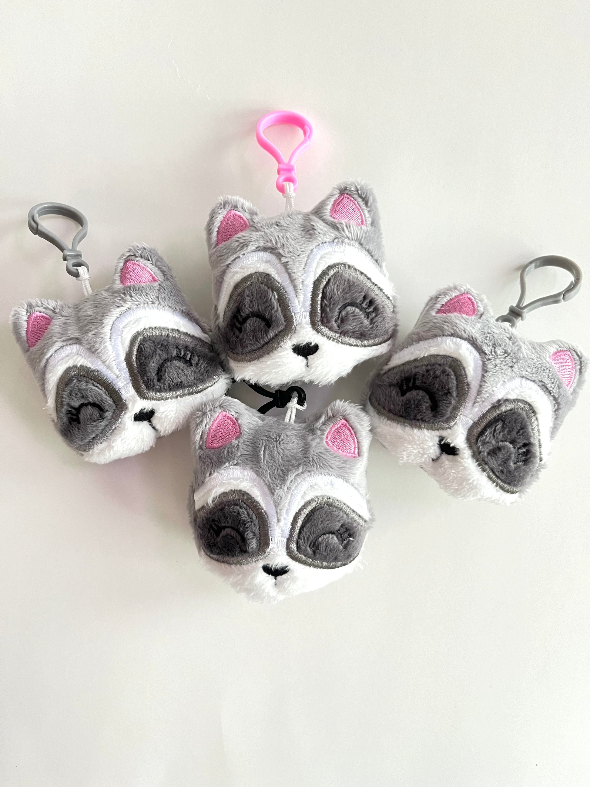 Created using gray and white minky fabric, this Stuffed Minky Raccoon Keychain is the perfect accessory for any raccoon lover. With its embroidered design and soft, fluffy texture, it's absolutely adorable. Easily attach it with the plastic lobster clasp. Clasp color may vary.